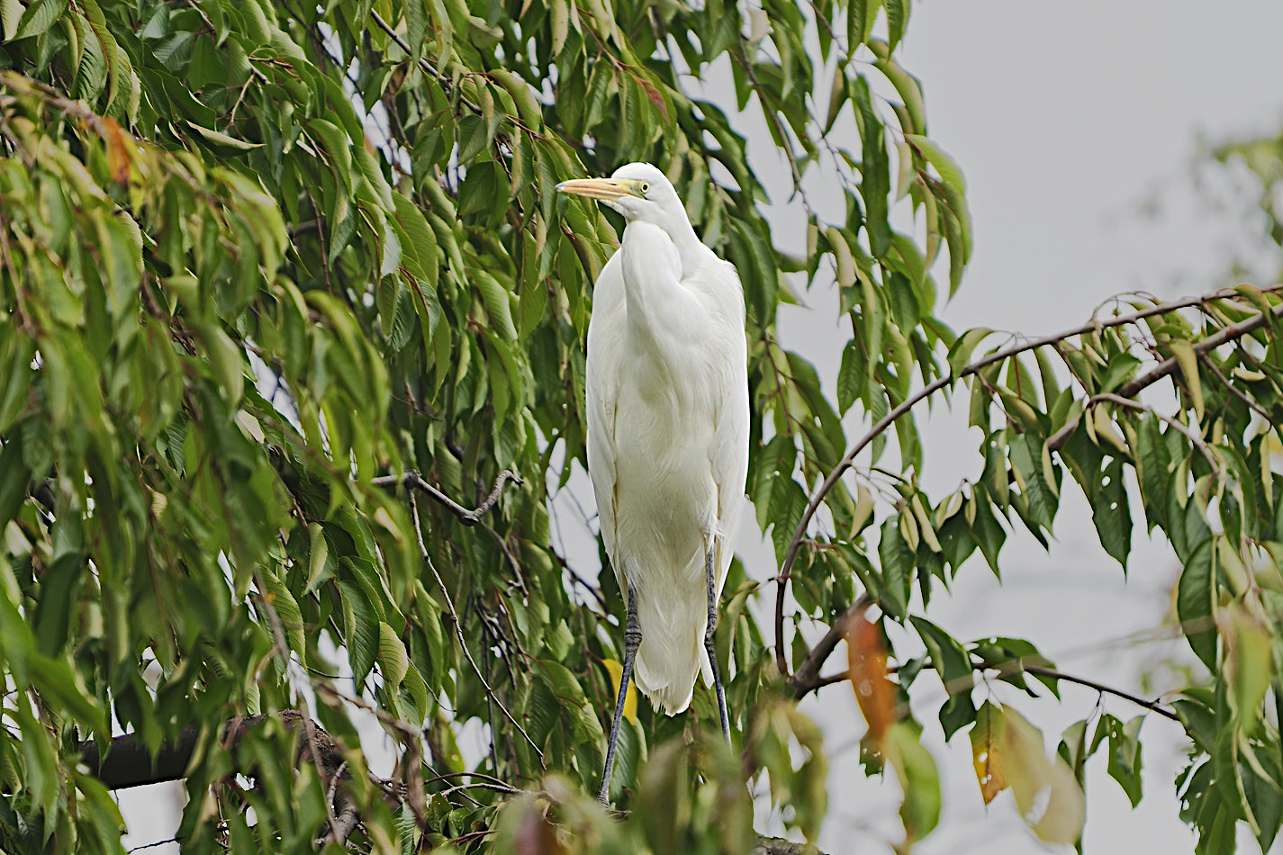 みどり橋の近くで高校三年生の木を眺めると、鳥が飛び交っていたので今日はいるみたい。でも前回と同じ曇り空なので、モノになったのはこの1枚だけ。