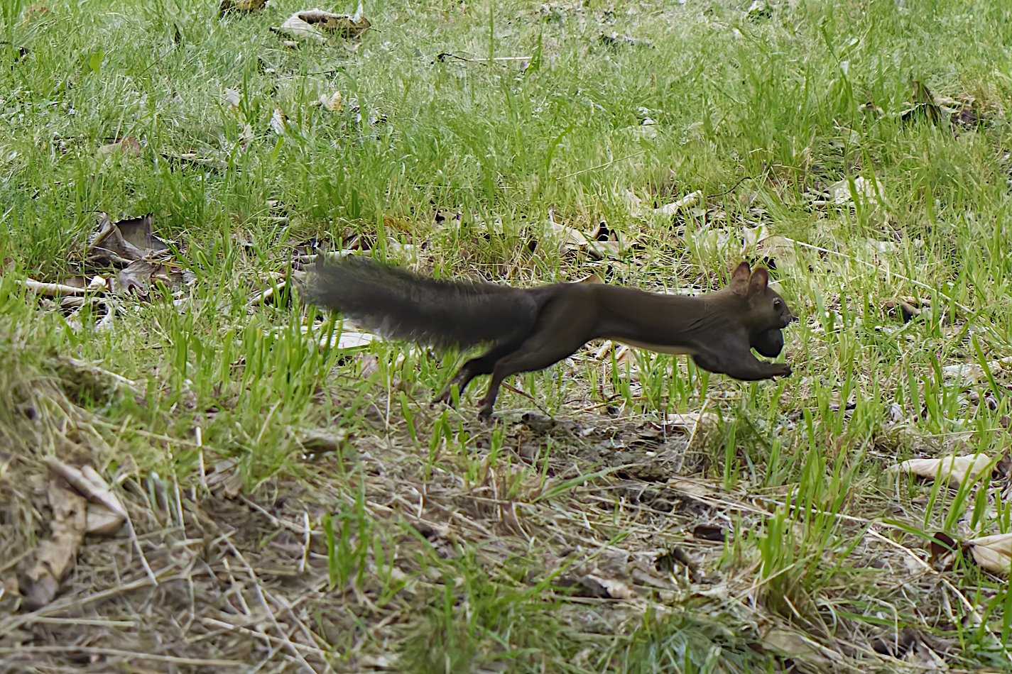 公園で花を撮った帰り路、3キロコースを横切りながら、疾走しているエゾリスを発見。慌てて、カメラを構えて撮ったが、何とか間に合った。