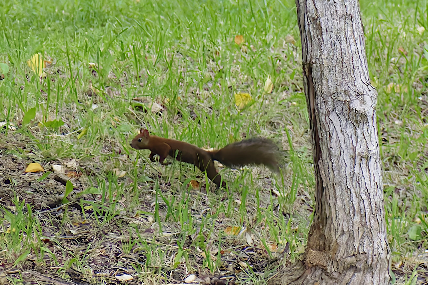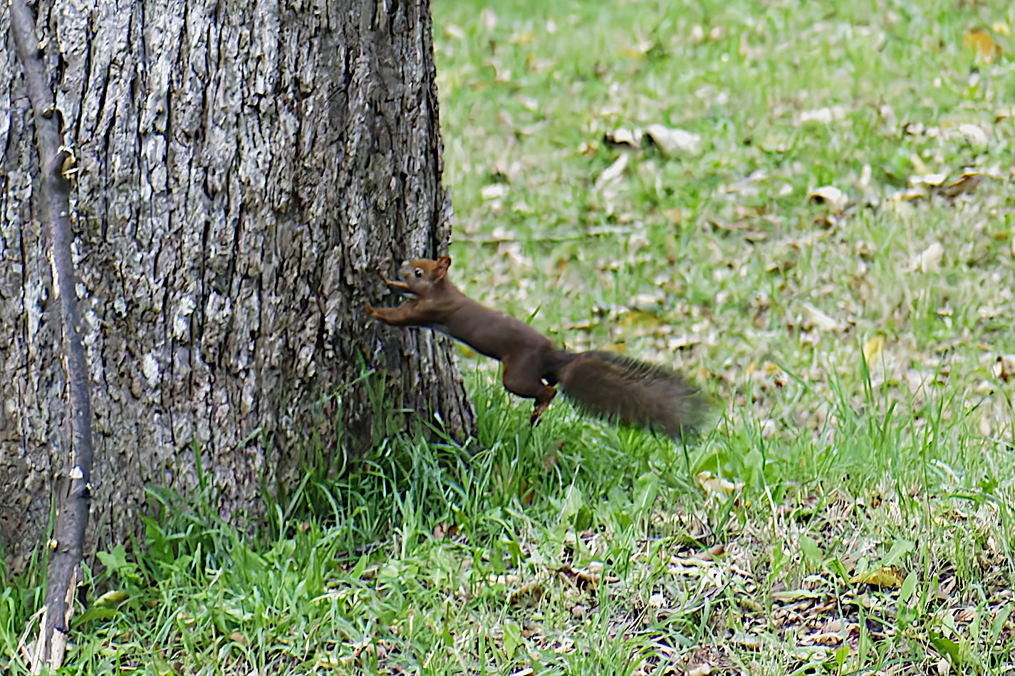 公園に向かう途中、緑道を横切って行くリスがいたので、追いかけて撮ったものの、何かしら被っている写真が多かった。