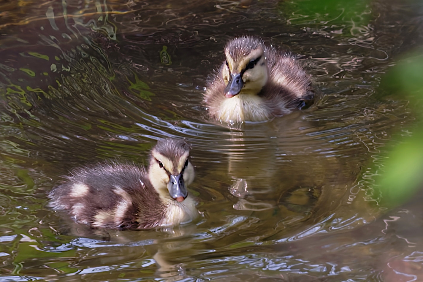 子達はもうかなり大きくなって、泳ぐスピードは親以上だしバラバラ行動。この時は水面が最もカラー化している辺りまで待って撮影した。
